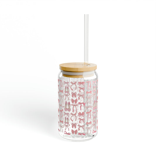 Pink bows and high heels glass cup, Glass cup with straw, Iced Coffee Cup, Glass Can 16oz with Lid and Straw, Glass Tumbler, Coquette Bows